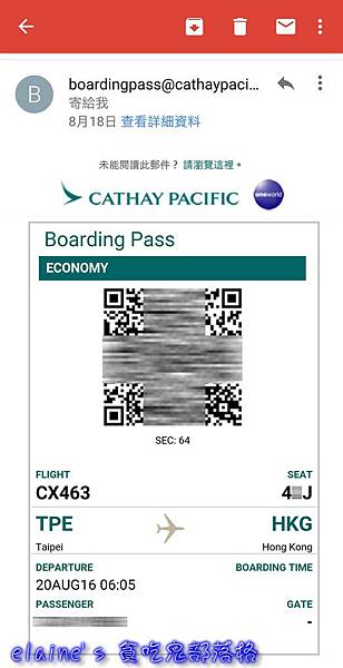 第2種是手機出示國泰航空E-Mail