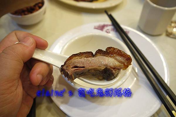鴨肉呈現暗粉紅的肉質,鴨皮多餘的油膩已被烤掉,連骨頭都香的很